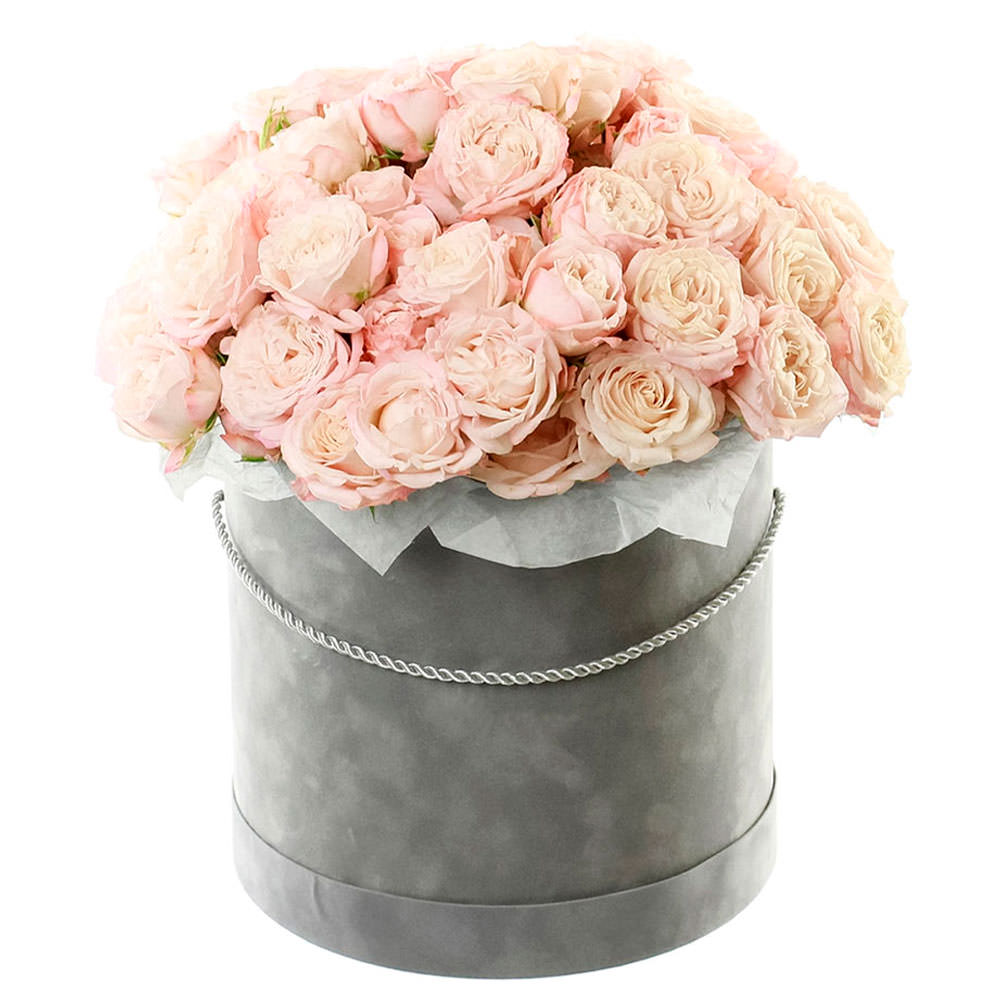 Розы в цилиндрической коробке «Пудровая нега» с гарантией качества, цены и быстрой доставки!
